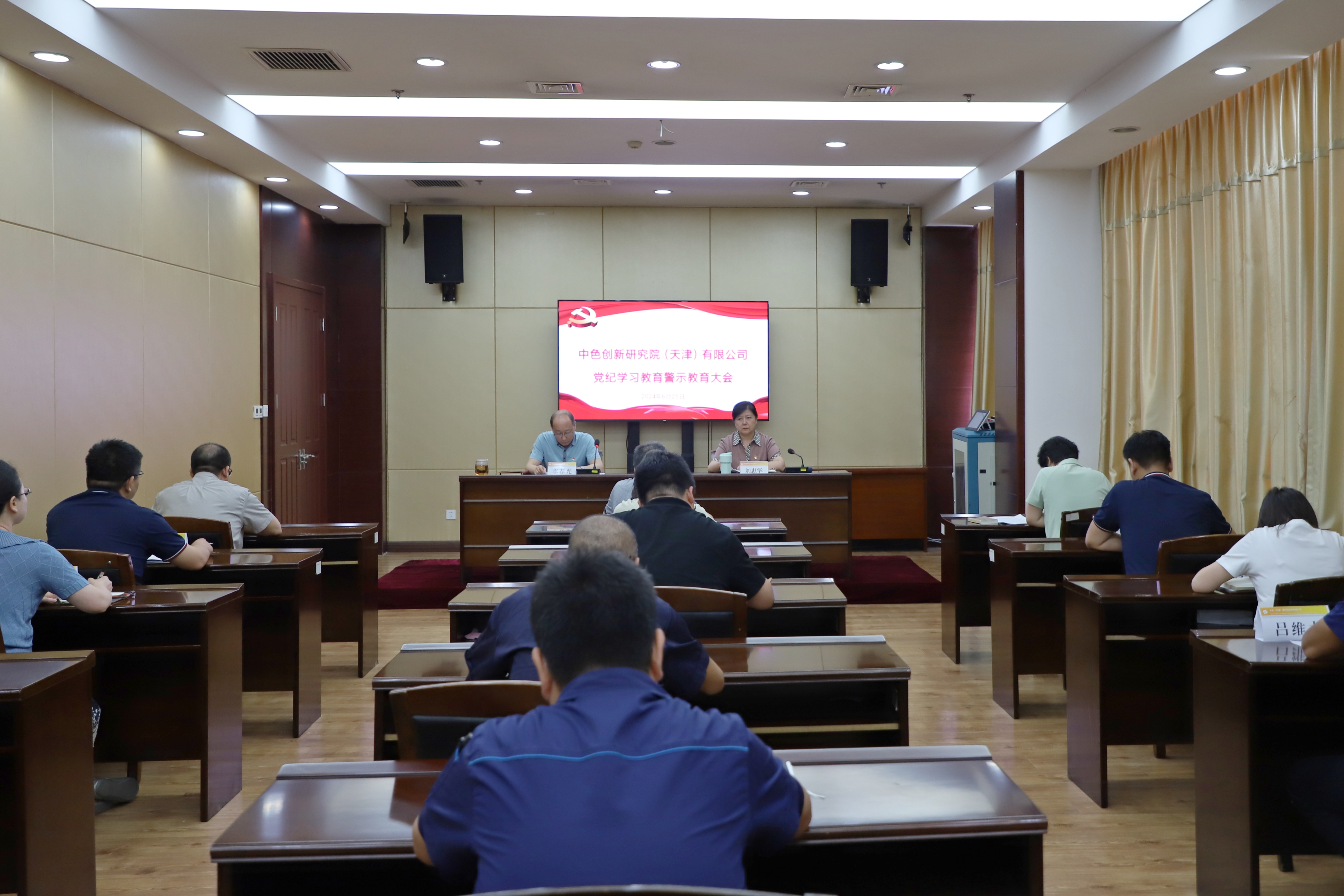6月25日,中國有色集團出資企業創新研究院天津公司召開黨紀學習教育警示教育大會。天津公司黨委書記、執行董事李春光主持會議,傳達學習習近平總書記關于全面加強黨的紀律建設的重要論述并講話;黨委委員、紀委書記劉惠華圍繞“六大紀律”通報近年來典型案例。集團公司黨紀學習教育第三工作組以視頻形式列席督導。