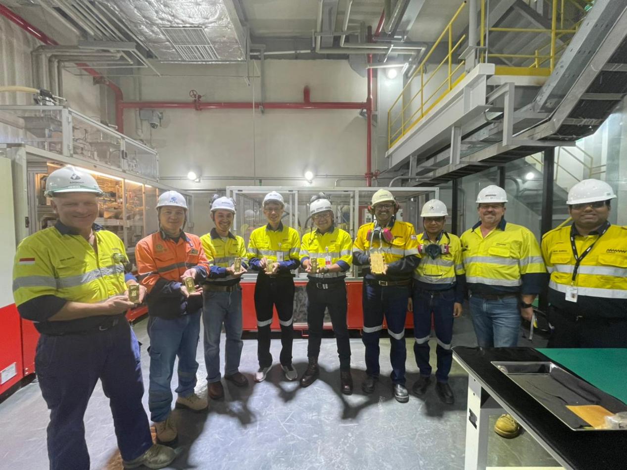 7月15日,中色股份承建的印尼阿曼銅冶煉EPC項目稀貴生產冶煉工藝全部貫通,產出首塊“1公斤標準金錠”