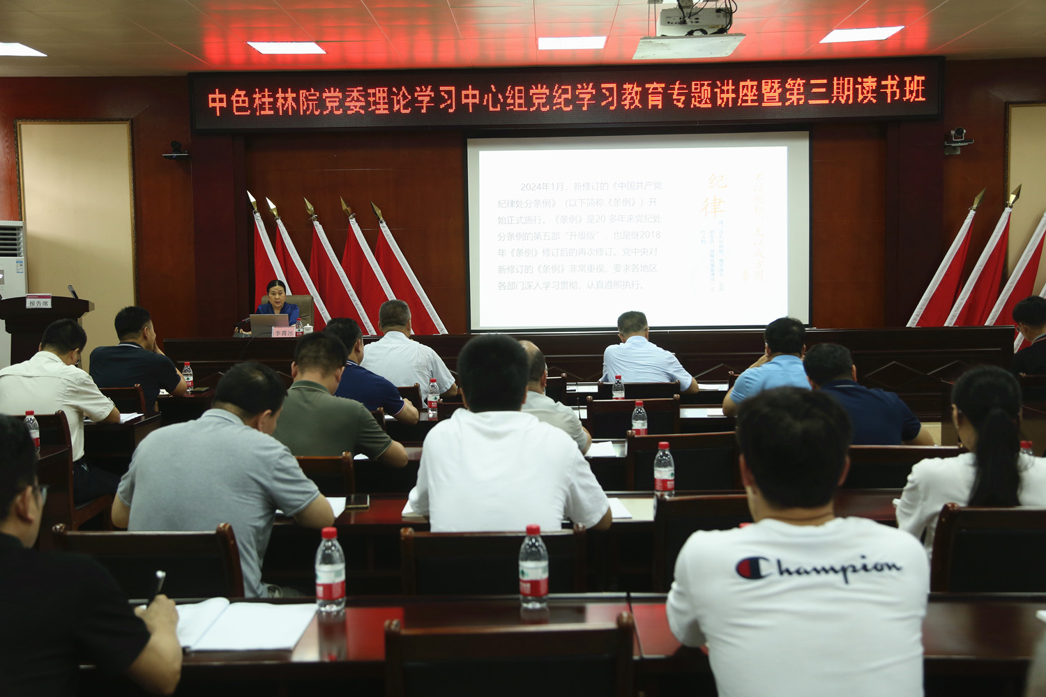 5月27日,中色桂林院舉辦黨委理論學(xué)習(xí)中心組黨紀(jì)學(xué)習(xí)教育專題講座暨第三期讀書班,邀請(qǐng)中共桂林市委黨校李霄冰教授深入解讀《中國共產(chǎn)黨紀(jì)律處分條例》和《中國共產(chǎn)黨巡視工作條例》,進(jìn)行專題講座輔導(dǎo)。中色桂林院黨委書記、董事長、總經(jīng)理?xiàng)顕咧鞒謱W(xué)習(xí)會(huì)議并作總結(jié)講話。