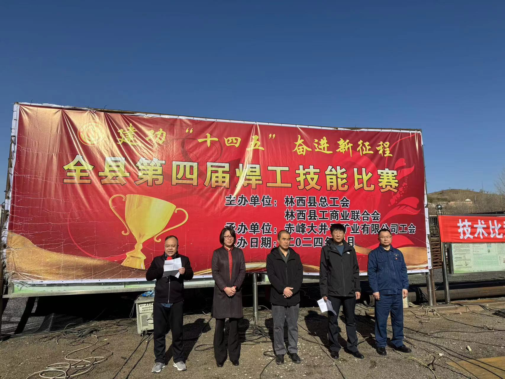 焊花璀璨映初心,匠心燃情勇?lián)?dāng)。4月11日,在大井子礦業(yè)二礦東區(qū),一場技能大賽上演著焊工行業(yè)標(biāo)桿間的對決。本次賽事是由林西縣總工會、林西縣工商聯(lián)合會主辦,大井子礦業(yè)第四次承辦的林西縣焊工技能比賽,大井子礦業(yè)公司內(nèi)部第五屆焊工技術(shù)比武也一同進(jìn)行,同時為檢驗(yàn)大井子礦業(yè)“師帶徒”活動成果,設(shè)置了師帶徒鉗工學(xué)徒間比武環(huán)節(jié),評選出了三位優(yōu)勝學(xué)徒。林西縣總工會黨組書記、常務(wù)副主席王澤華、縣工商聯(lián)主席賈志華出席活動,縣總工會黨組成員、副主席李德春致開幕辭,大井子礦業(yè)黨委副書記、工會主席左向東主持活動。
